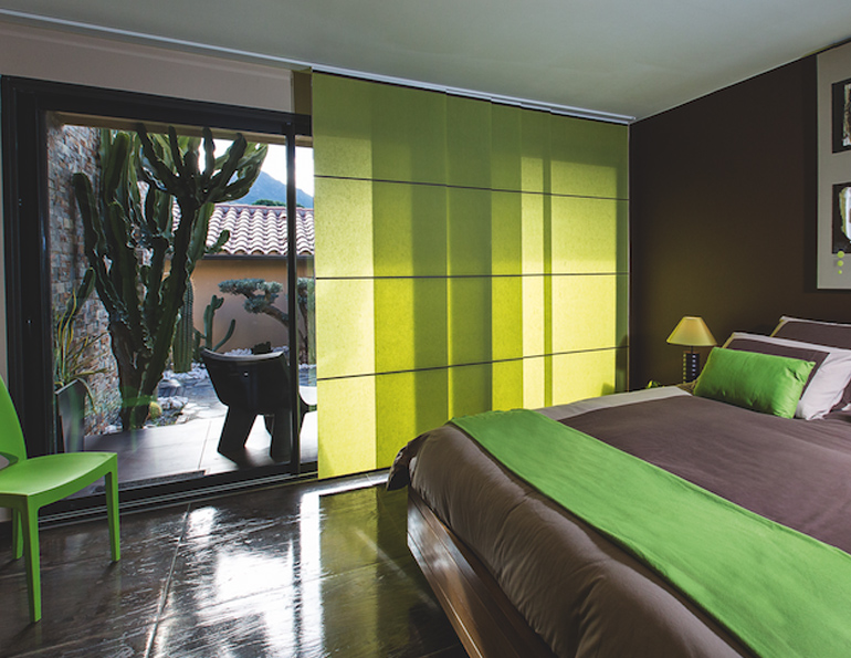 Refusez la standardisation, tournez-vous vers une paroi japonaise résolument à votre image et aux couleurs de votre intérieur. Le store japonais, grâce au large choix de tissus et de couleurs, s’apparie à toute ambiance intérieure, de manière aussi discrète qu’élégante.